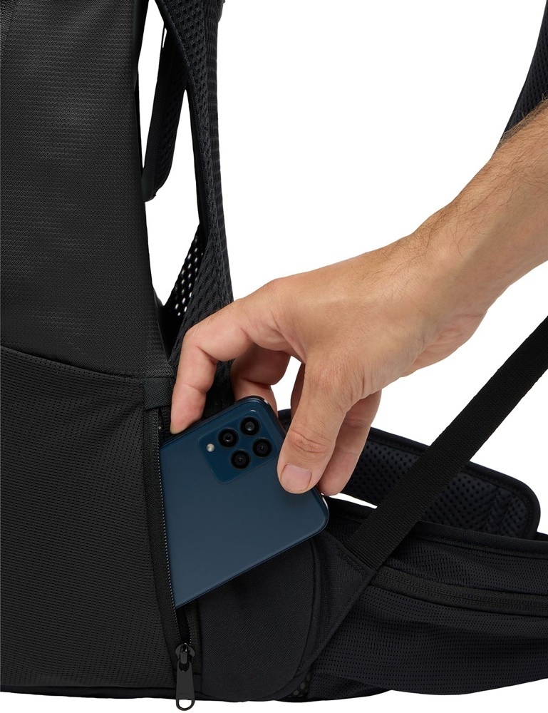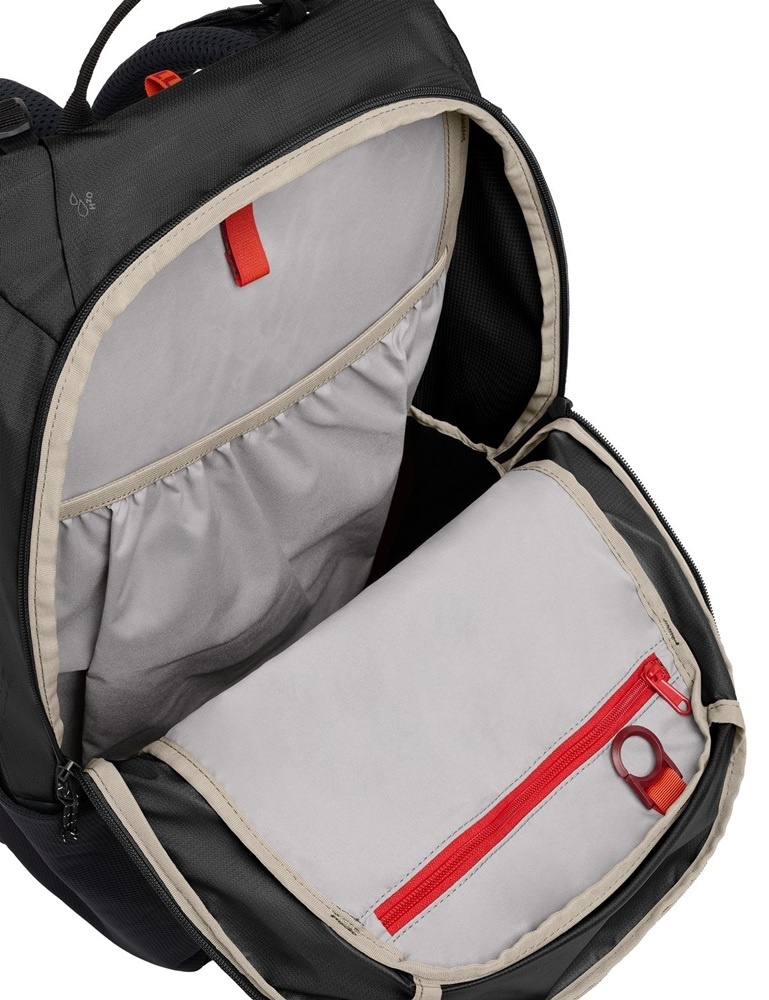 De Trailvent 20 heeft een ruim hoofdvak, met daarin een ritsvakje en een sleutelhaak. Het steekvak achterin biedt ruimte voor het plaatsen van een drinksysteem (niet inbegrepen) en is voorzien van een uitgang voor een drinkslang. Voorop de tas zit nog een ritsvak, met daarin een organiser met twee elastische steekvakjes en een klemelastiek, voor het overzichtelijk meenemen van fietsgereedschap en een fietspomp. In de elastische zijvakken van mesh kunt u handschoenen, snacks of een bidon opbergen. Aan een van de zijkanten zit een ritsvakje voor het veilig opbergen van een portemonnee of telefoon. Ook in de gepolsterde heupband vindt u een ritsvakje, voor spullen die u voor het grijpen wilt hebben. Met de compressiebanden aan de zijkant kan het volume van de tas worden aangepast aan de inhoud.
