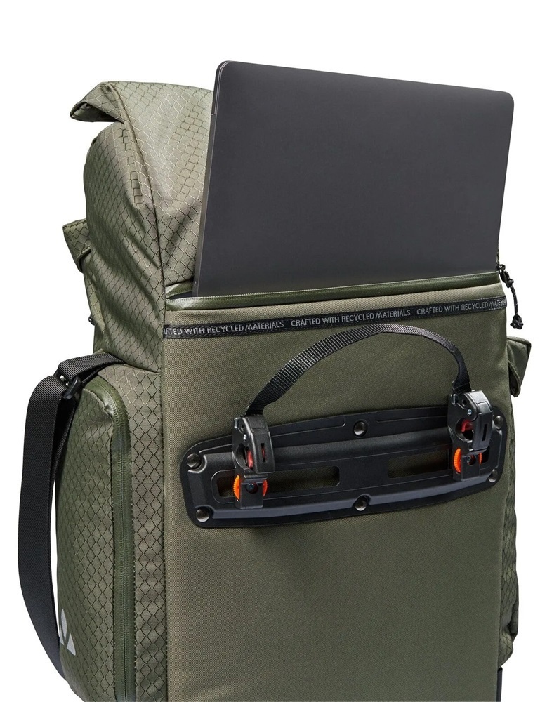 Deze Cyclist Pack is gemaakt van PVC-vrij, gerecycled materiaal en heeft het Vaude Green Shape-label. Dit label staat voor een milieuvriendelijk, functioneel product van duurzame materialen. Naast PVC-vrij en klimaatneutraal produceren, focust Vaude zich in meerdere opzichten op mens, medewerker en omgeving.
