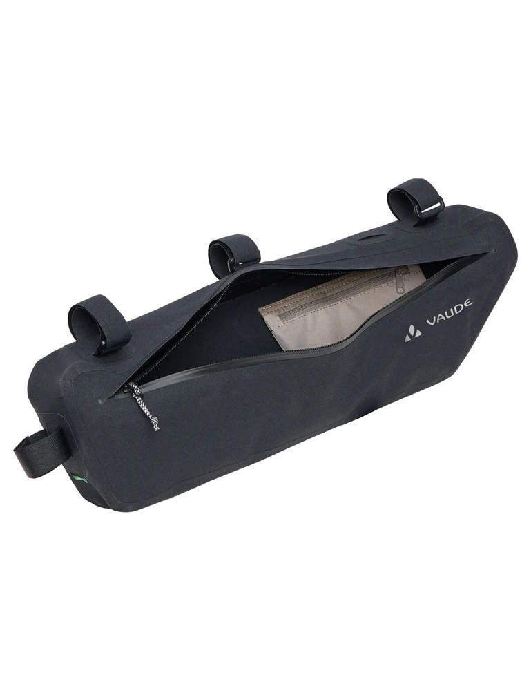 De Trailframe van Vaude is 100% waterdicht dankzij de gelaste naden en de waterproof ritssluiting. U opent de frametas gemakkelijk met een brede ritssluiting. Binnenin de frametas bevindt zich nog een opbergvakje met een rits. Door het lage zwaartepunt kunt u zwaardere spullen in de tas kwijt, zoals gereedschap en tentstokken.