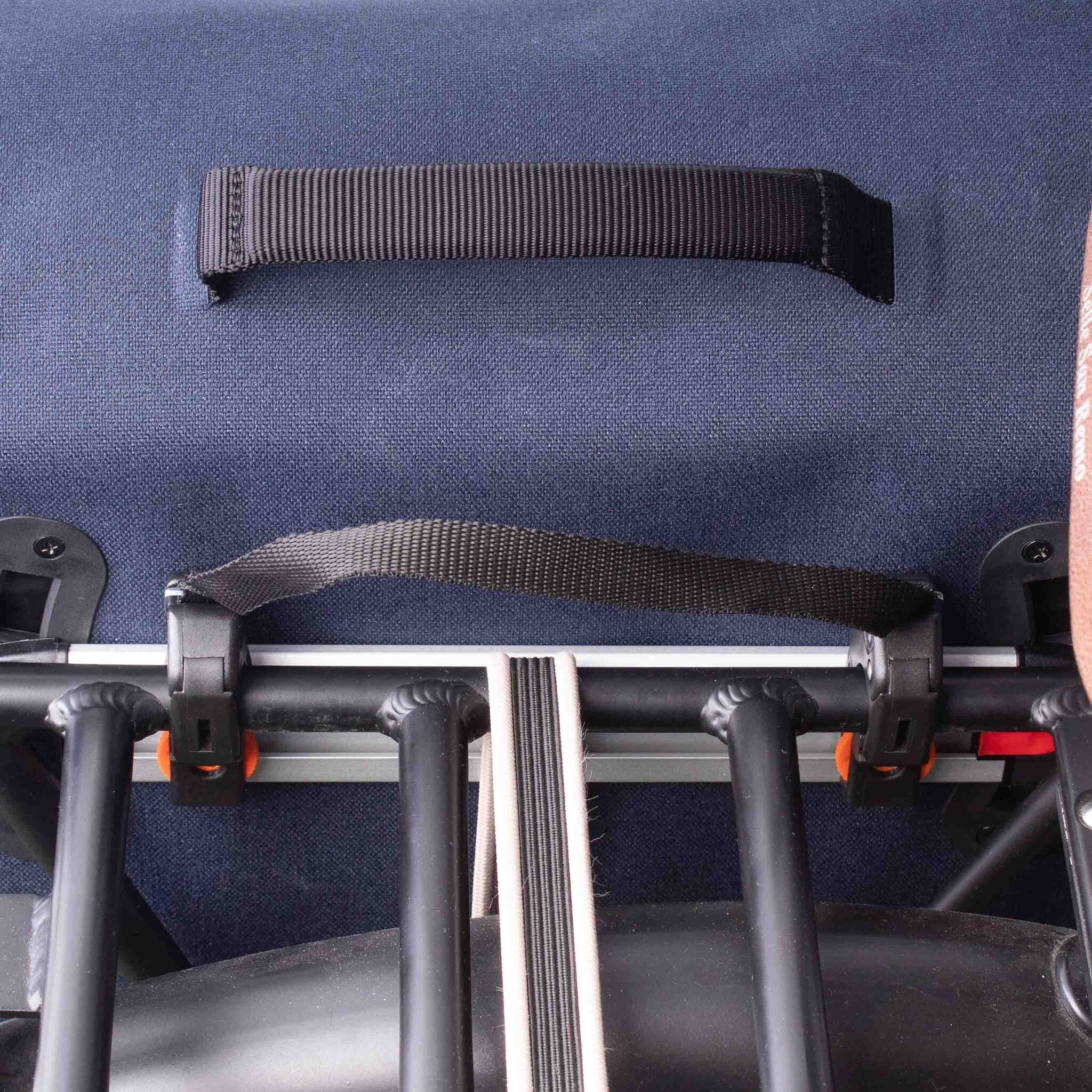 - De rail kan ook schuin gemonteerd worden, zodat u met uw hielen de tas niet raakt tijdens het fietsen.