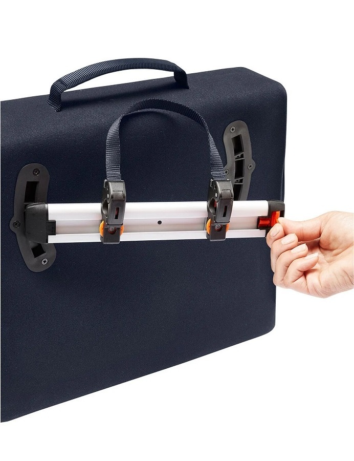 - De haakrail is desgewenst met één klik in zijn geheel van de tas verwijderbaar.
