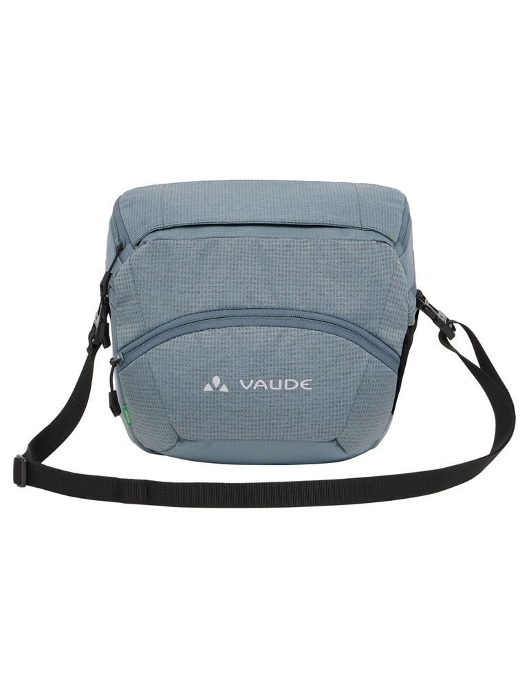 Dit is de OnTour Box van Vaude in de maat L, uitgevoerd in het blauwgrijs en met een inhoud van 6 liter. Deze compacte stuurtas kan worden bevestigd met KLICKfix, het bekende, gemakkelijke bevestigingssysteem.