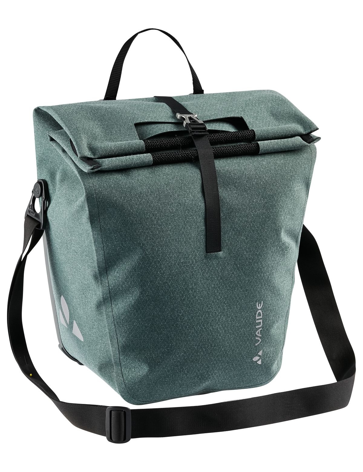 De groene fietstas Recycle Back Single van Vaude is een enkele fietstas van hoge kwaliteit, met een inhoud van ruim 23 liter. Met de afneembare en verstelbare schouderband is de tas ook als schoudertas te dragen. De naam zegt het al: de tas is vrijwel volledig gemaakt van gerecyclede materialen. Deze tas in een shopper-design is dus niet alleen stijlvol en praktisch, maar ook milieubewust en duurzaam!
