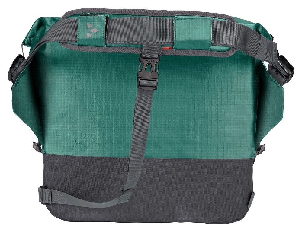 Deze veelzijdige en eigentijdse schoudertas van Vaude biedt ruimte voor 13 liter aan spullen, en is gemaakt van gerecyclede materialen. De tas in de kleuren groen en grijs is slijtvast, weerbestendig en heeft waterdichte ritssluitingen.