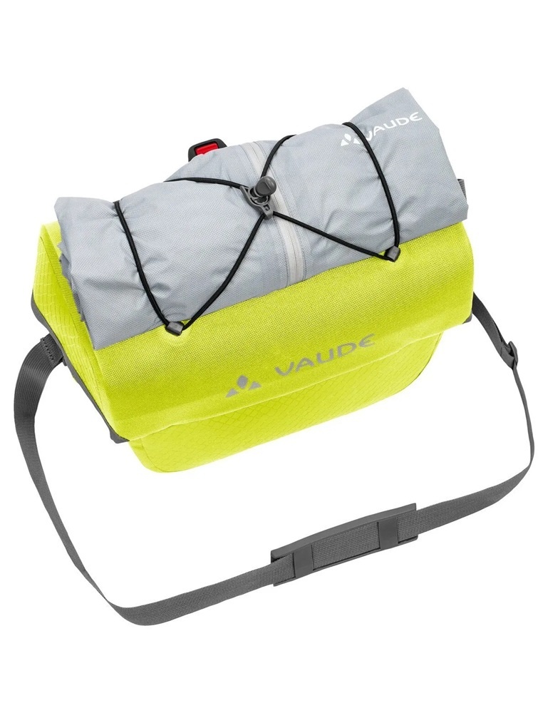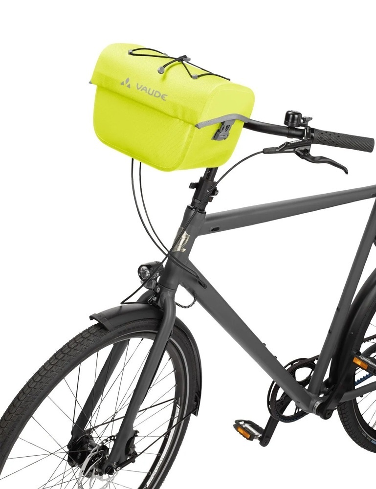 De verstevigde, vormvaste stuurtas is uitgevoerd in fluorescerend geel/groen. De Aqua Box is eenvoudig met één hand te openen en op de bovenkant van de tas is er ruimte voor een hoestas BeGuided (niet inbegrepen, zie gerelateerde producten). In deze hoestas kunt u een fietskaart, telefoon of tablet plaatsen, zodat u altijd weet welke kant u op moet. Onder het elastische koord op de bovenkant kunt u handschoenen of een windjack opbergen. Binnenin de tas vindt u opbergvak met een rits. En dankzij de bijgeleverde afneembare schouderband kunt u de Aqua Box als schoudertas dragen wanneer u te voet verder gaat.