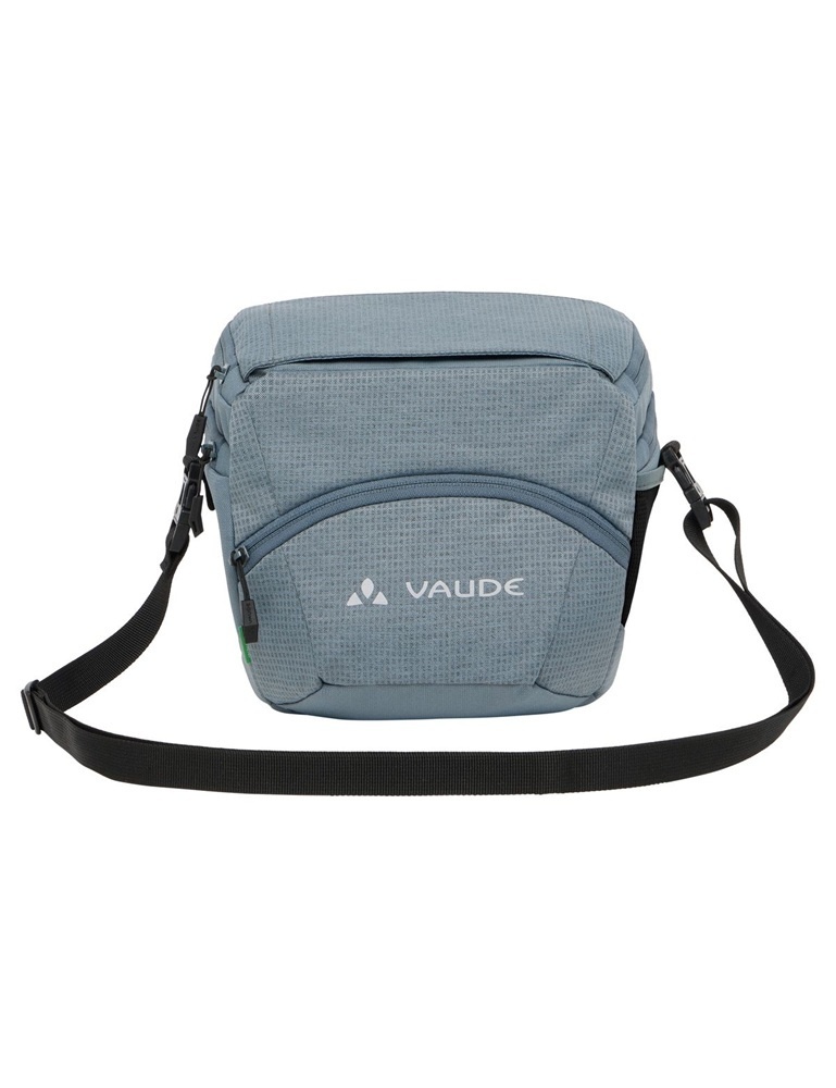 Dit is de OnTour Box van Vaude in de maat M, uitgevoerd in het blauwgrijs en met een inhoud van 4 liter. Deze compacte stuurtas kan worden bevestigd met KLICKfix, het bekende, gemakkelijke bevestigingssysteem.