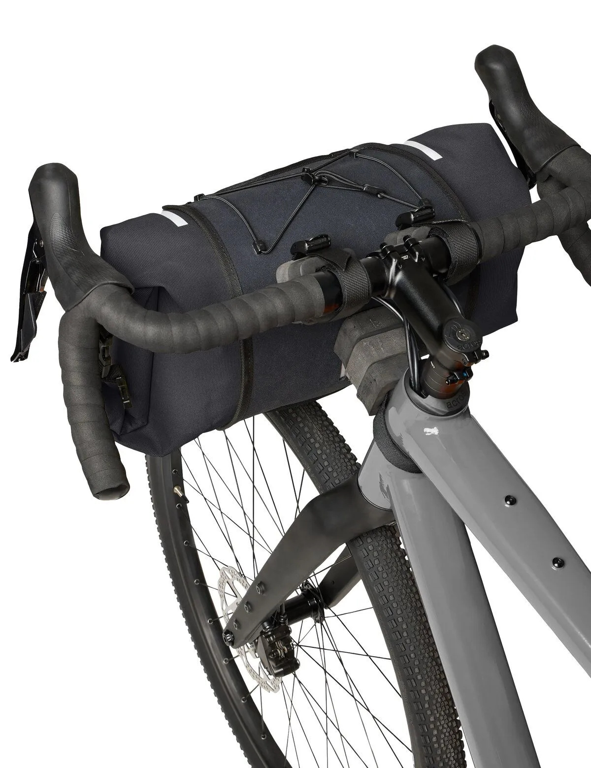 De Trailfront Cage bestaat uit een houder en een uitneembare packsack. De houder kan op de fiets blijven zitten tijdens het bikepacken. De tas wordt met twee gespen snel en eenvoudig aan de houder bevestigd. De stuurtas is aan beide kanten toegankelijk en af te sluiten met een waterproof rolsluiting met een klikgesp. Hierdoor is de tas in volume verstelbaar. Als u minder spullen meeneemt, rolt u de tas verder en compacter op. De houder is voorzien van reflectie, en op de bovenkant zit een handige elastische koordspin, waar bijvoorbeeld een regenjack achter opgeborgen kan worden. De stuurtas is vooral geschikt voor lichte bagage, zoals kleding.