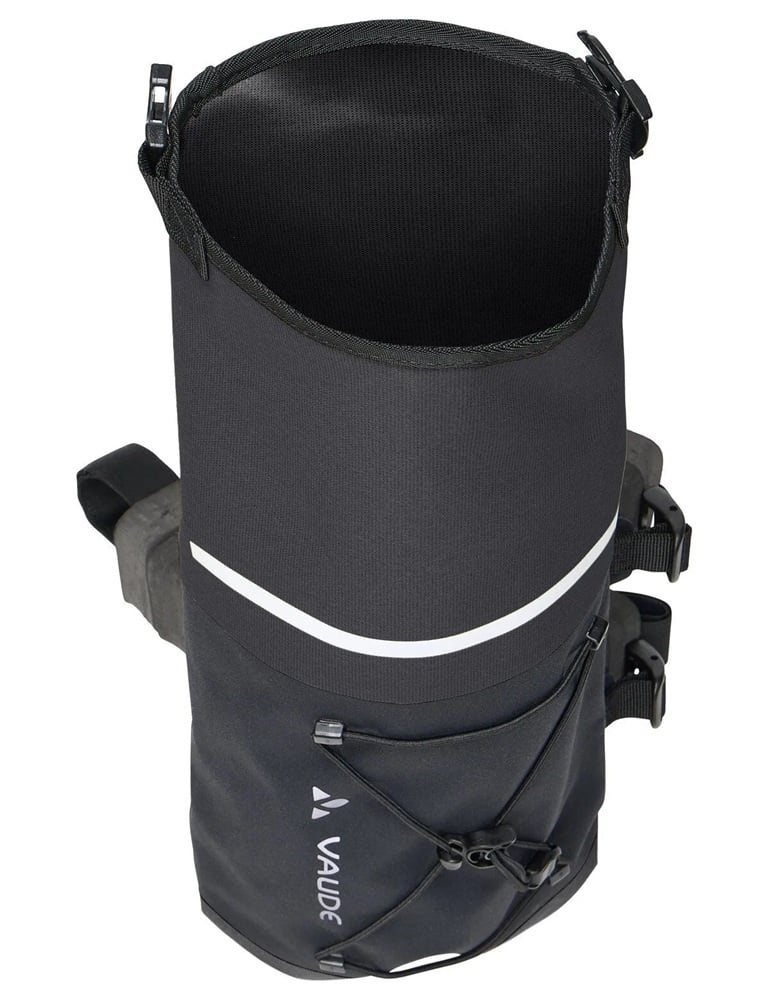 De stuurtas is aan beide kanten toegankelijk en af te sluiten met een waterproof rolsluiting met een klikgesp. Hierdoor is de tas in volume verstelbaar. Als u minder spullen meeneemt, rolt u de tas verder en compacter op. Op de voorkant van de tas zit een handige elastische koordspin, waar bijvoorbeeld een regenjack achter opgeborgen kan worden. Deze stuurtas is vooral geschikt voor lichte bagage, zoals kleding.
