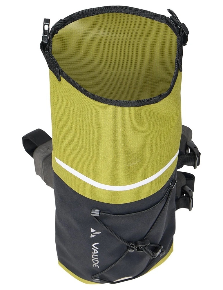 De stuurtas is aan beide kanten toegankelijk en af te sluiten met een waterproof rolsluiting met een klikgesp. Hierdoor is de tas in volume verstelbaar. Als u minder spullen meeneemt, rolt u de tas verder en compacter op. Op de voorkant van de tas zit een handige elastische koordspin, waar bijvoorbeeld een regenjack achter opgeborgen kan worden. Deze stuurtas is vooral geschikt voor lichte bagage, zoals kleding.