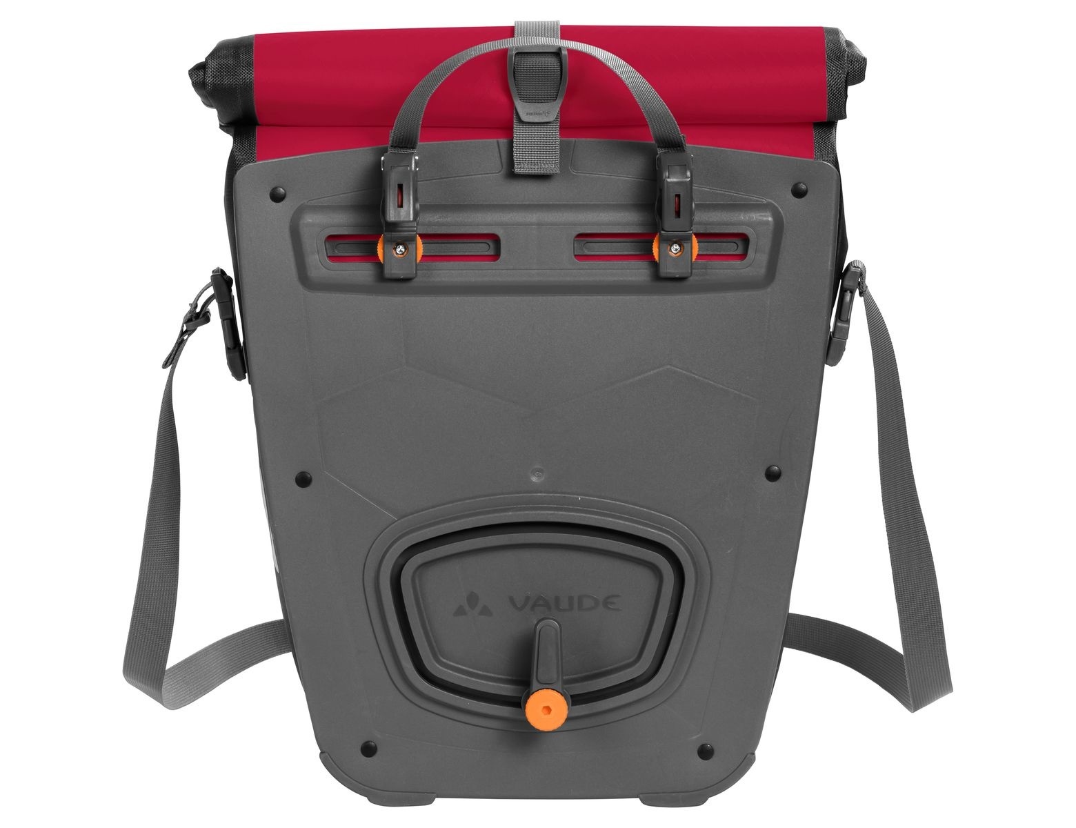 Het merk Vaude is een begrip in de wereld van talrijke accessoires waar de fanatieke fietser blij van wordt. Deze tassenset Aqua Back is ontwikkeld en gemaakt in de buurt van de Bodensee, in het Duitse Obereisenbach. Met zorg, voor tal van details die het verschil kunnen maken. Zo ook met betrekking tot het doordachte bevestigingssysteem.