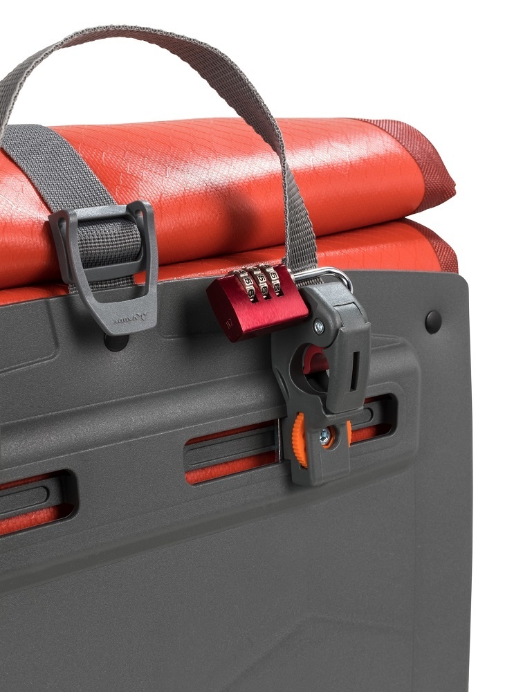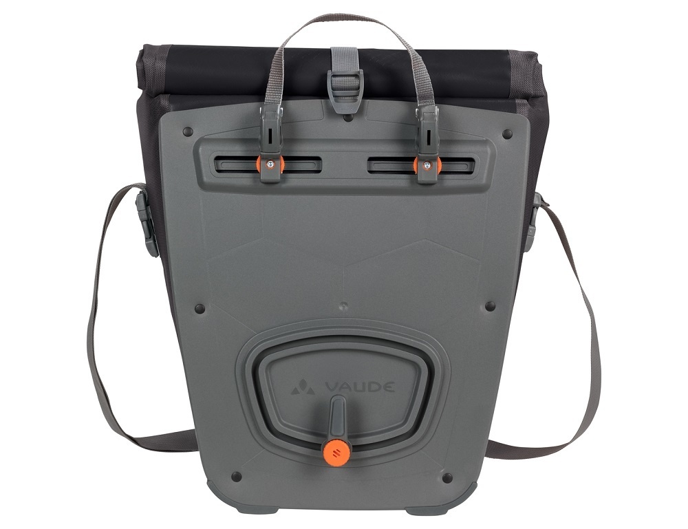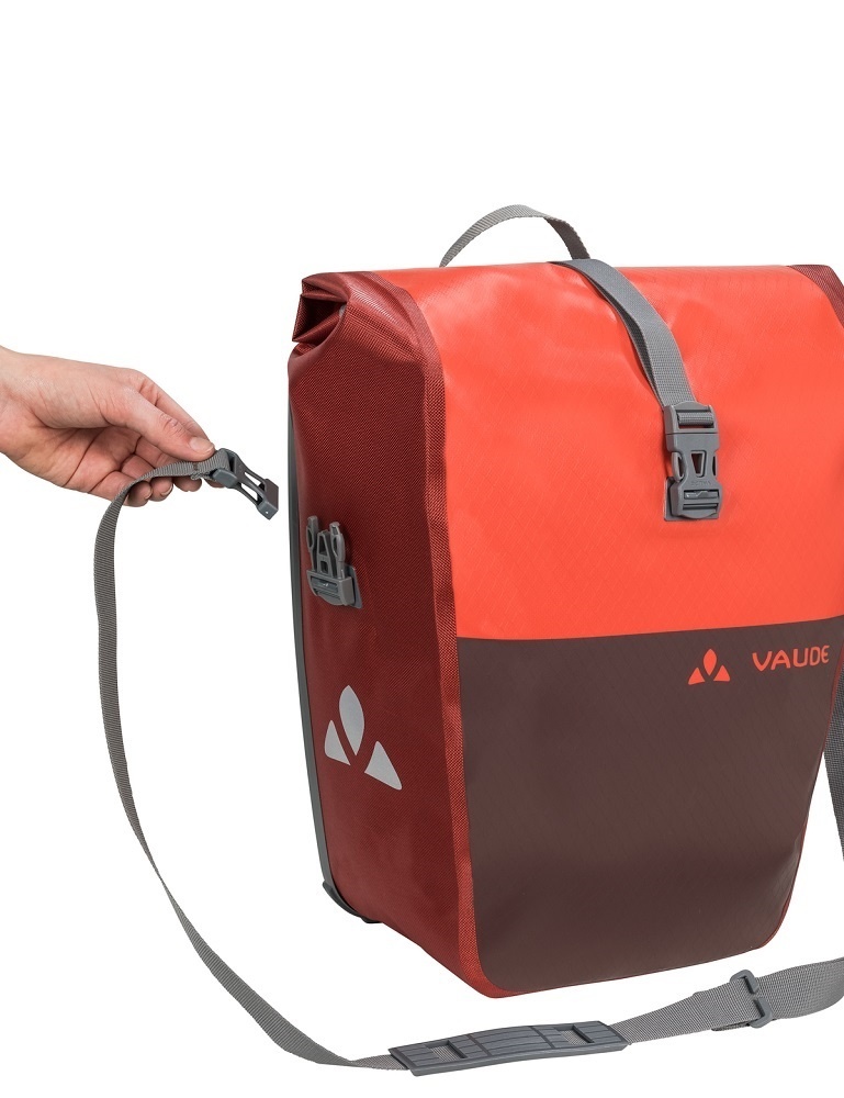 Dankzij het doordachte bevestigingssysteem zijn dit met recht pakaftassen. De unieke functie van Vaude die ervoor zorgt dat het afnemen van de tas letterlijk in één beweging gebeurt, heet Quick Mount Release (QMR). Even trekken aan het handvatkoord dat gekoppeld is aan het kliksysteem, en de beide haken klikken soepel los van de bagagedragerbuis. Wilt u de tas te voet meenemen? Dat doet u handig met de afneembare en tevens verstelbare schouderband. Het is ook mogelijk om de QMR-haken te vergrendelen met bijvoorbeeld een ABUS 145/20 hangslot. Zo kunt u de tassen op de fiets laten zitten en gaat u diefstal tegen. Slotjes zijn apart verkrijgbaar (zie gerelateerde producten).