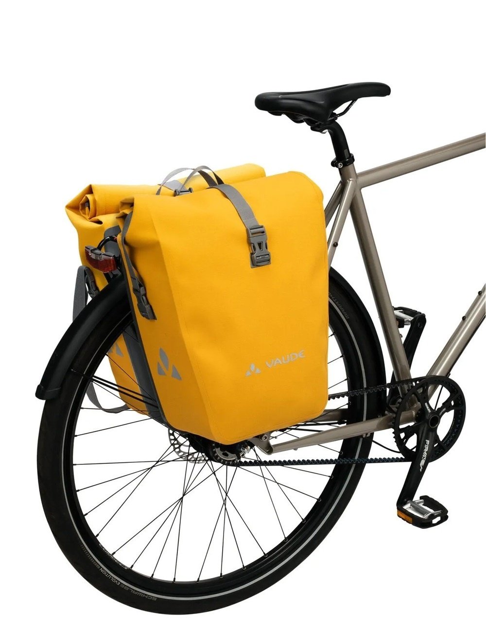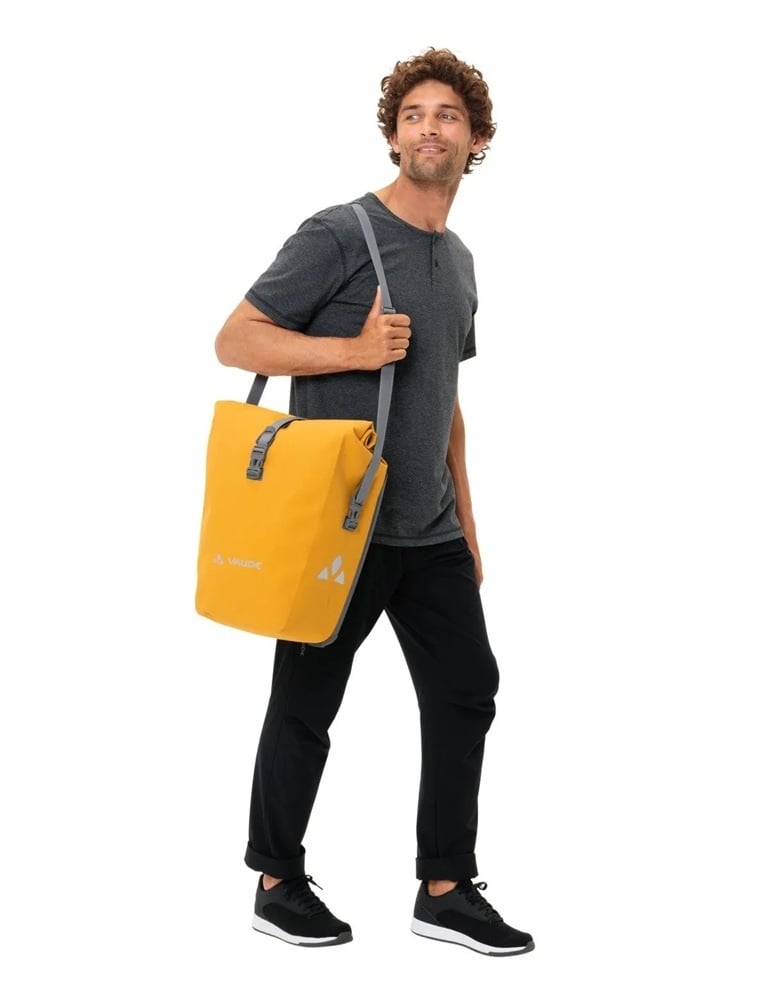 Deze tassenset Aqua Back Deluxe van het merk Vaude bestaat uit twee gele enkele fietstassen van hoogwaardige kwaliteit. De waterdichte tassen voor achterop hebben gelaste naden, 48 liter inhoud, een rolsluiting, reflectie en een afneembare schouderband. De tassen worden bevestigd met het QMR 2.0-bevestigingssysteem.