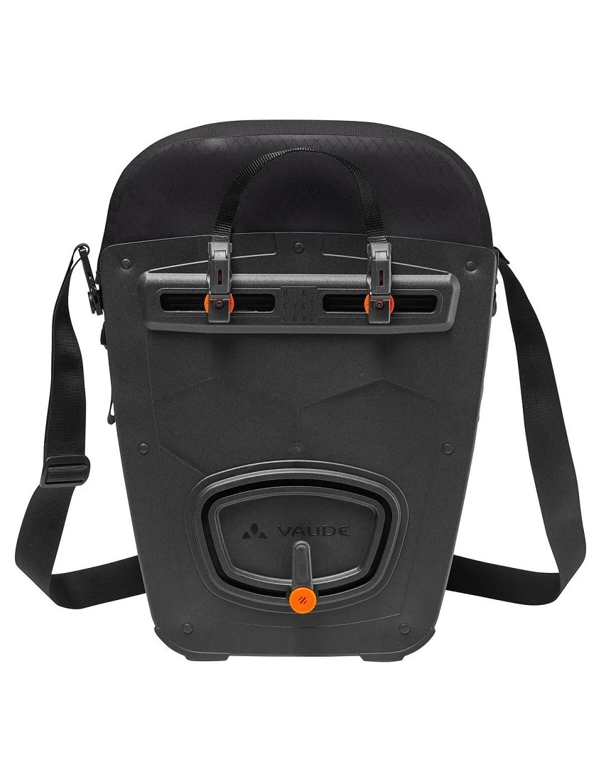 De Aqua Backs zijn echte pakaftassen. De unieke functie van Vaude die ervoor zorgt dat het afnemen van de tas letterlijk in één beweging gebeurt, heet Quick Mount Release (QMR 2.0). Even trekken aan het handvatkoord dat gekoppeld is aan het kliksysteem, en de beide haken klikken soepel los van de bagagedragerbuis. Wilt u de tassen liever op uw fiets laten zitten? Met een fietsslot (bijvoorbeeld een ABUS 145/20 hangslot), dat direct aan de QMR-haken kan worden vergrendeld, gaat u diefstal tegen. Slotjes zijn apart verkrijgbaar (zie gerelateerde producten).