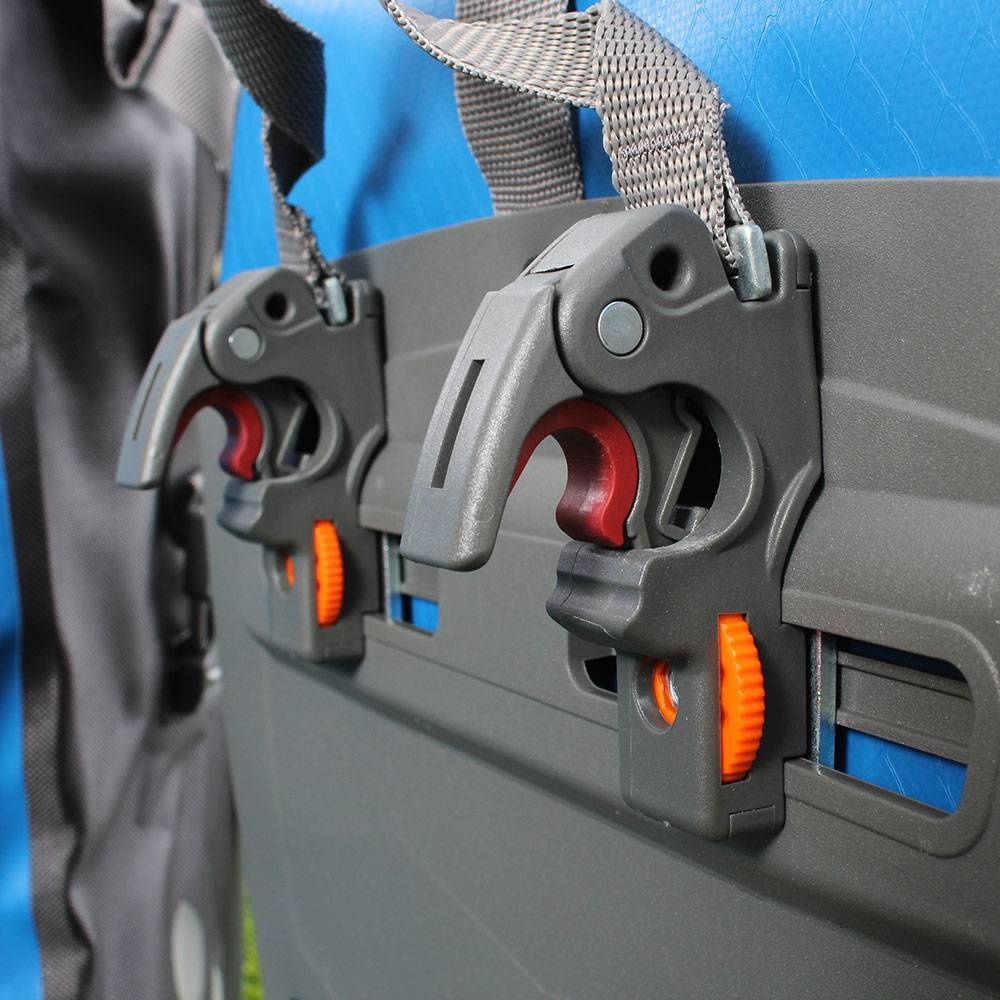 De voorwieltassen bevestigt u makkelijk aan uw voordrager met het QMR 2.0-systeem en de stabiele hardshell achterplaat. Het is echter ook mogelijk om deze tassen achterop te plaatsen. Het QMR 2.0-systeem is een eenvoudig kliksysteem. U zet de haken van de tas simpelweg op de drager. Door lichte druk uit te oefenen klikt u de tas vast. De haken zijn verstelbaar door aan de wieltjes te draaien. De geleidehaak aan de hardshell achterplaat van de tas zorgt ervoor dat de onderkant van de tas stevig op zijn plek blijft zitten. Deze geleidehaken kunt u makkelijk verstellen, zodat u de tas op elke gewenste plek kunt vastmaken. U haalt de tas weer van uw drager af door simpelweg de draaghendel omhoog te trekken. Met de bijgeleverde afneembare schouderband, neemt u de tas handig mee. Wilt u de tassen liever op uw fiets laten zitten? Met een fietsslot,(bijvoorbeeld een ABUS 145/20 hangslot), dat direct aan de QMR-haken kan worden vergrendeld, gaat u diefstal tegen. Sloten zijn niet inbegrepen en kunt u apart bestellen (zie gerelateerde producten).