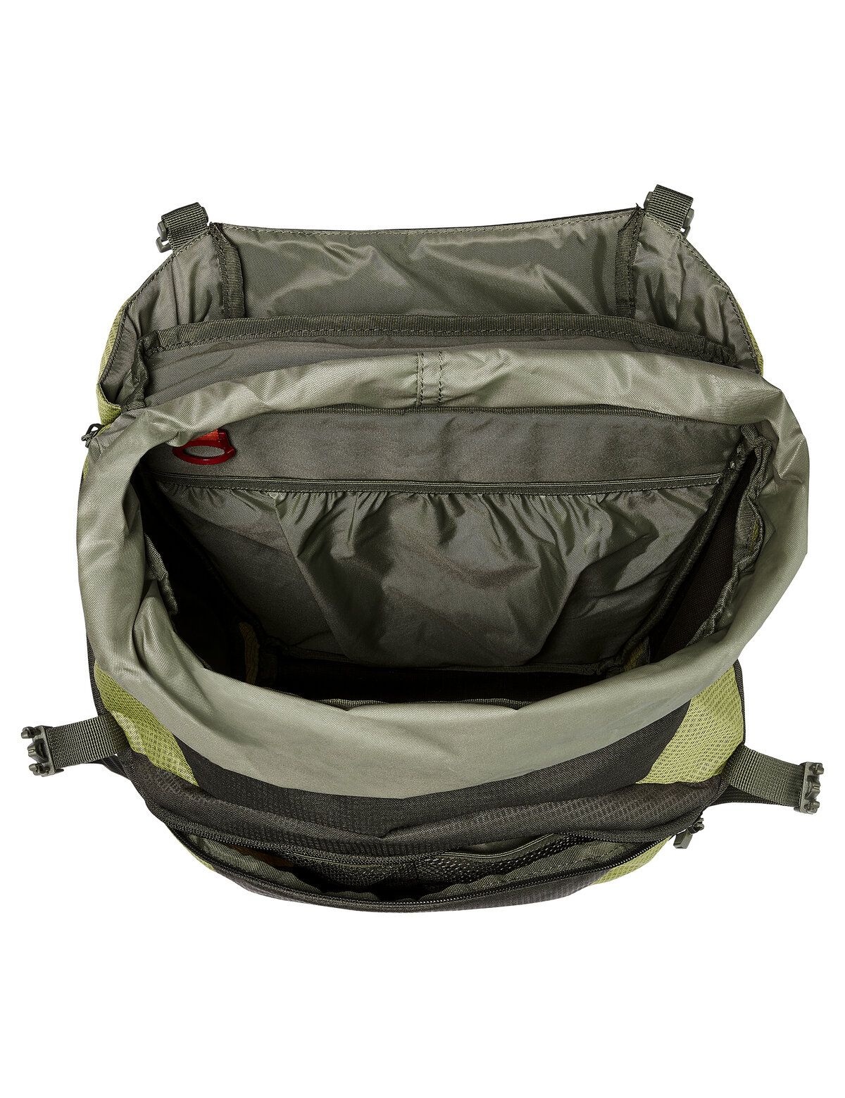 - De beide 16L hoofdvakken hebben een groot steekvak, een sleutelclip en daaraan een oranje gekleurde regenhoes (dus alles keer twee)