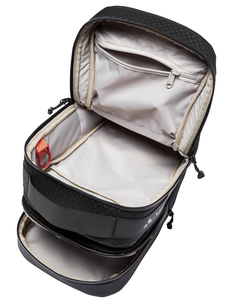 De Cyclist Saddle Bag is een praktische zadelpentas van het kwaliteitsmerk Vaude, met een inhoud van ca. 9 liter. De zwarte zadeltas biedt met twee ruime ritsvakken veel ruimte, en is ook uitgerust met een regenhoes. De tas wordt met een KLICKfix-adapter aan de zadelpen bevestigd. De zadeltas is een slimme fietstas voor langere fietstochten of voor dagelijks gebruik.