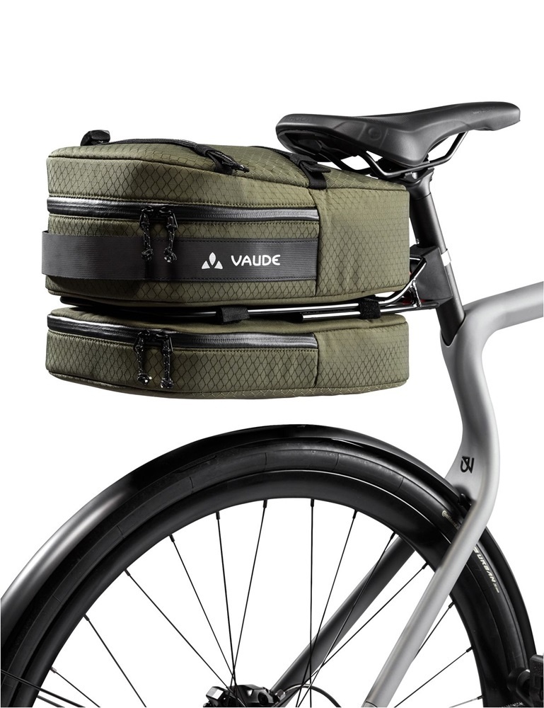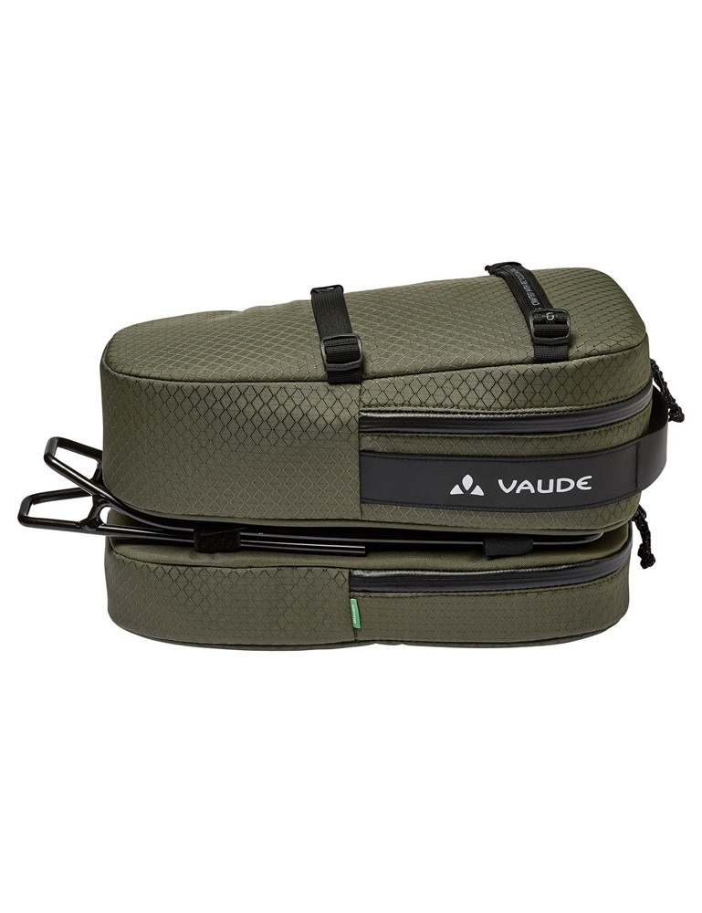 De Cyclist Saddle Bag is een praktische zadelpentas van het kwaliteitsmerk Vaude, met een inhoud van ca. 9 liter. De khakigroene zadeltas biedt met twee ruime ritsvakken veel ruimte, en is ook uitgerust met een regenhoes. De tas wordt met een KLICKfix-adapter aan de zadelpen bevestigd. De zadeltas is een slimme fietstas voor langere fietstochten of voor dagelijks gebruik.