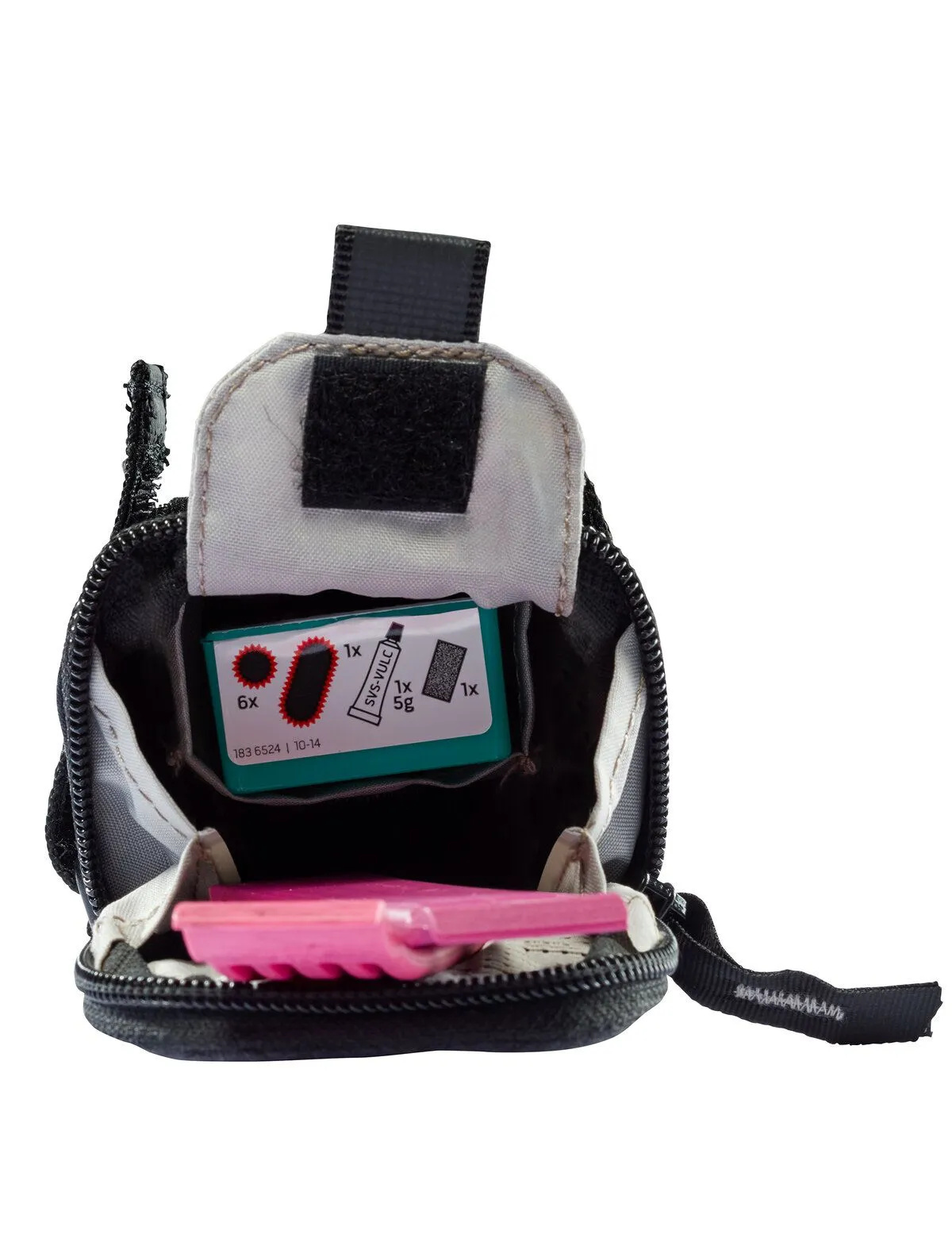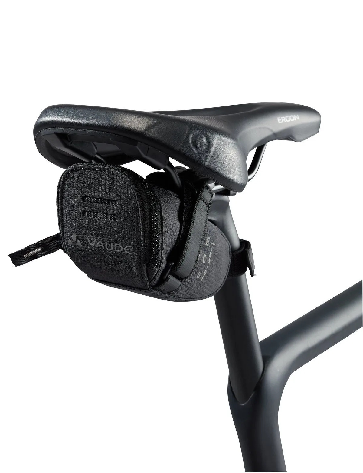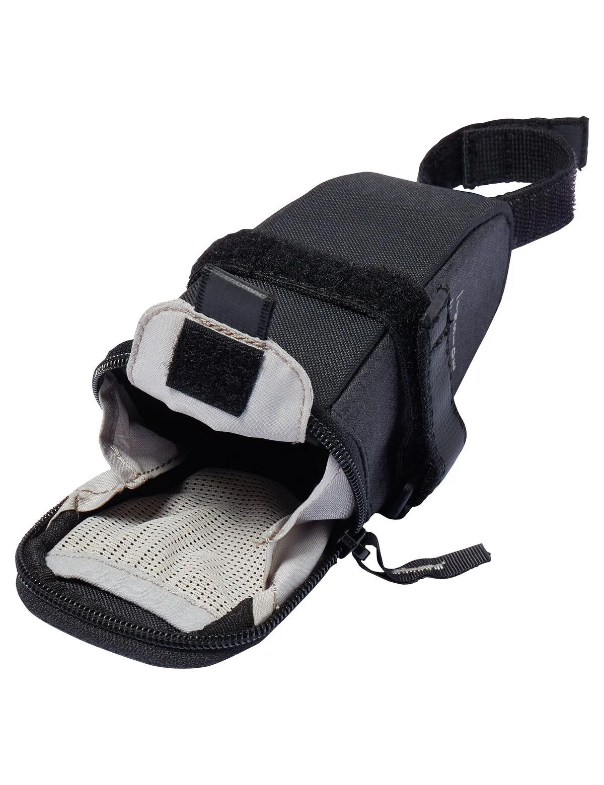 Een compacte zadeltas van Vaude voor fietsgereedschap, zeer licht van gewicht en gemakkelijk onder het zadel te bevestigen met klittenband. Deze zwarte Race Light M Luminum is deels gemaakt van reflecterend materiaal, voor extra zichtbaarheid in het verkeer.