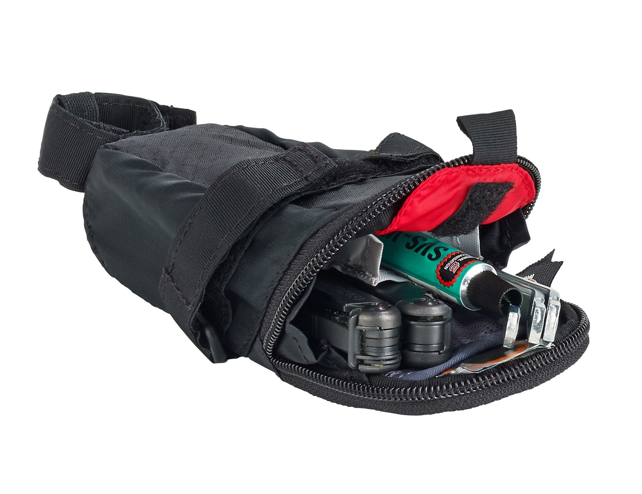 Zadeltas voor fietsgereedschap: zeer lichtgewicht en met klittenbandbevestiging. Deze maat M herbergt 0,4 liter aan inhoud en heeft - hoe klein en compact deze ook is - zelfs nog ruimte voor twee (ienie) mini binnenvakjes voor de allerkleinste spulletjes die anders zomaar kwijt kunnen raken. Echt een zadeltasje voor 'minimalisten', slechts 58 gram wegend, in de afmetingen van 8 x 8 x 15 cm. Extra: deze zadeltas van Vaude van hoge kwaliteit biedt een aansluitmogelijkheid voor een ledlampje, heeft sterk reflecterende elementen en is waterafstotend afgewerkt met het duurzame, PVC-vrije bewerkingsprocedure Eco Finish, speciaal ontwikkeld door Vaude.
