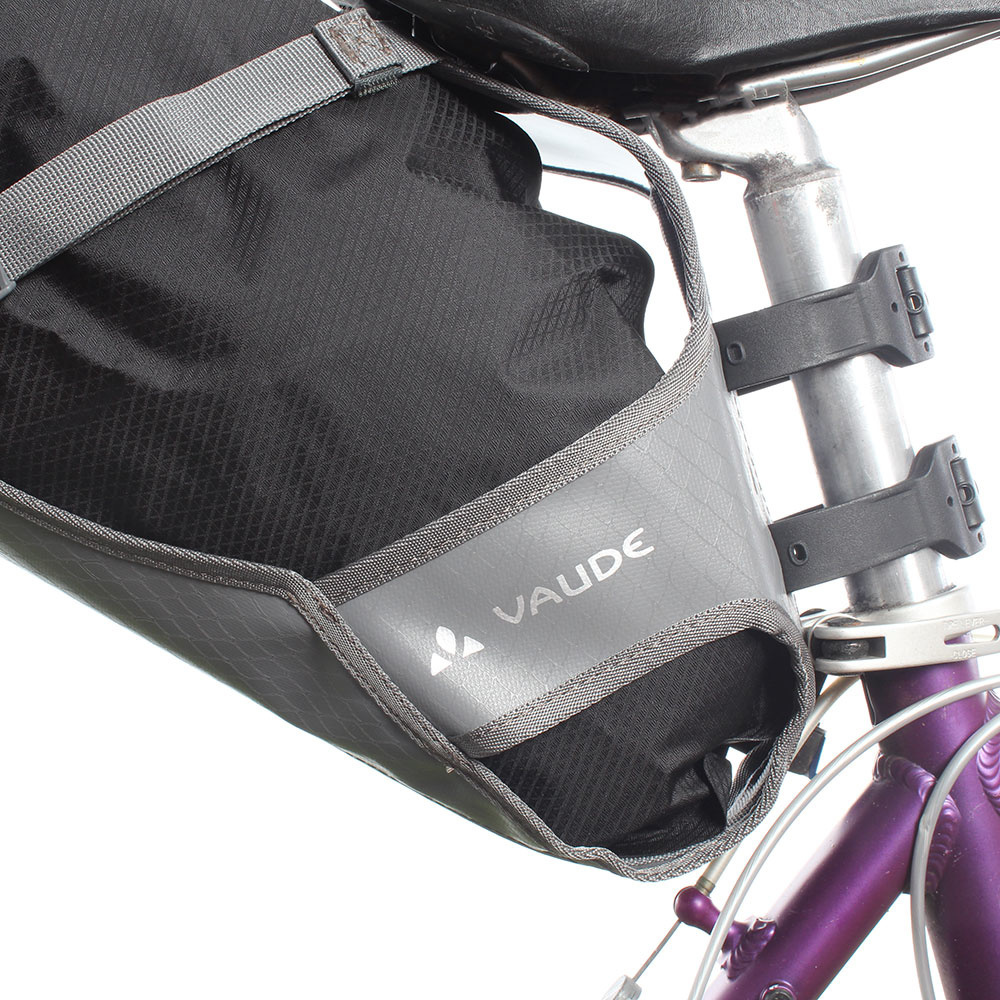 De Trailsaddle van Vaude, gemaakt voor de echte avonturier! Deze stevige, groen met zwarte zadeltas heeft een inhoud van maar liefst 12 liter en is gemaakt van PVC-vrij zeilmateriaal. Hij is waterdicht gelast, milieuvriendelijk gefabriceerd en voorzien van reflectie.