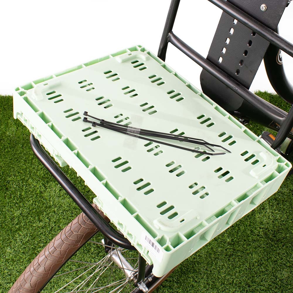 U bevestigt de klapkrat eenvoudig op de drager van uw fiets met de tiewraps die worden meegeleverd.