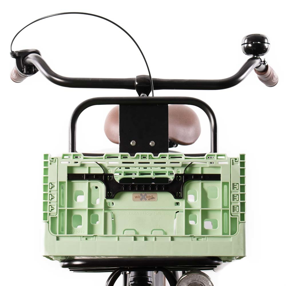 Deze compacte kunststof Smart Crate van Wicked heeft een inhoud van ca. 16 liter. De stevige fietskrat is uitgevoerd in het donkergrijs, met zwarte grepen. Heel handig: wanneer de krat leeg is, kunt u de vier zijden van de krat inklappen. Dit doet u door de grepen aan de zijkanten omhoog te schuiven.