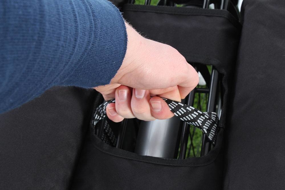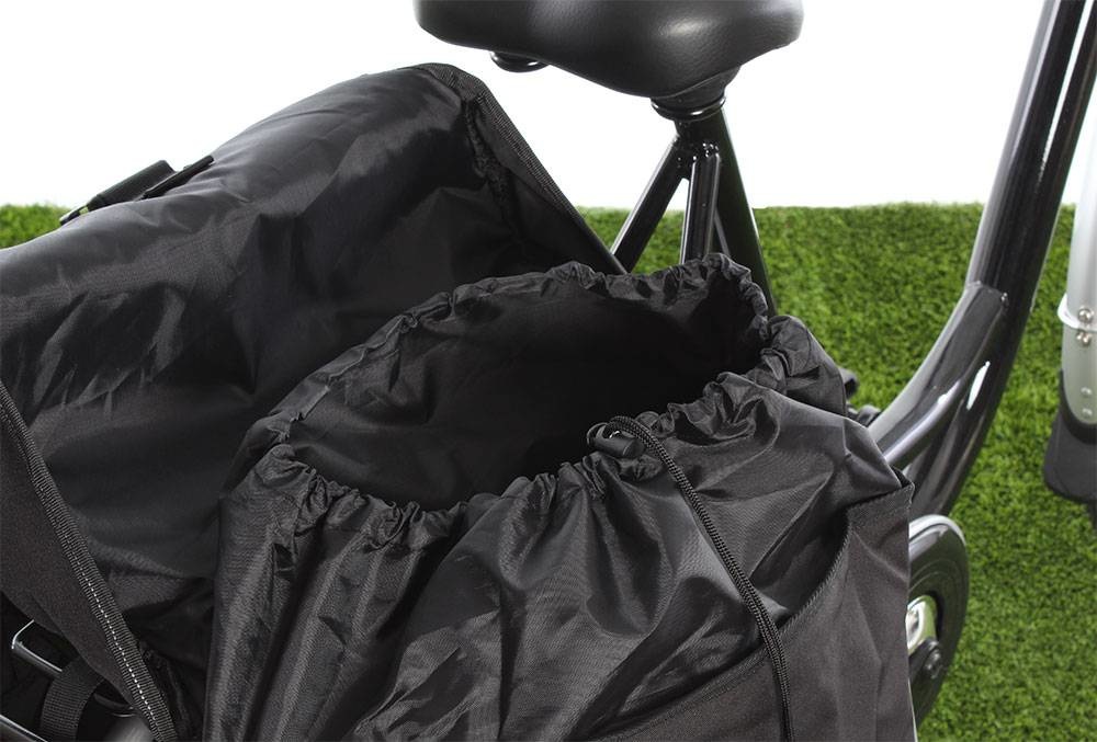 U bevestigt de dubbele fietstas eenvoudig aan uw bagagedrager met de twee bevestigingsriempjes. De tas is dus ook snel weer van de fiets af te halen. De bovenkant (tussen de tassen) bestaat uit twee banden, waardoor de snelbinders toegankelijk blijven. Handig voor bijvoorbeeld het plaatsen van ledverlichting.
