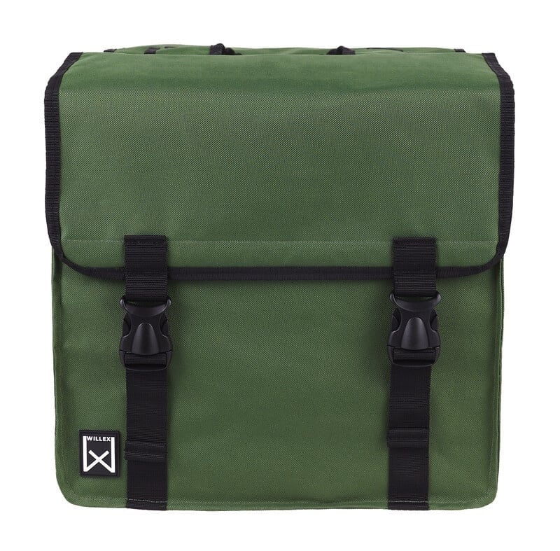 Deze praktische groene fietstas voor alle boodschappen is van het Belgische merk Willex. De dubbele Shopper XXL van Willex is gemaakt van waterafstotend polyester. De tas heeft een ruime inhoud van 46 liter, zodat er aardig wat boodschappen en andere spullen in meegaan.