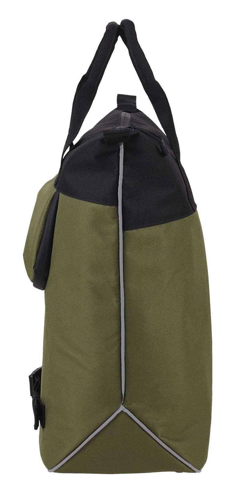 De gevoerde tas heeft een ruim hoofdvak met een ritssluiting. Binnenin zit een gevoerd steekvak en op de voorkant van de tas zit een ritsvak. De bodem van de tas is voorzien van vier bodemvoetjes, zodat tas stabiel blijft staan. De tas is bovendien makkelijk plat op te vouwen, dankzij de opklapbare bodemplaat. U draagt de tas aan de comfortabele draaggrepen. De zijkanten van de tas zijn voorzien van een opvallende reflecterende bies. En tijdens een regenbui houdt de meegeleverde fluorescerende regenhoes de inhoud van de tas droog.