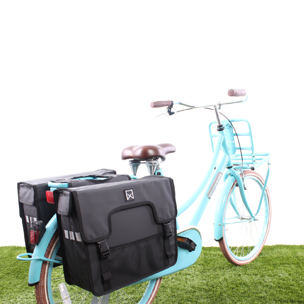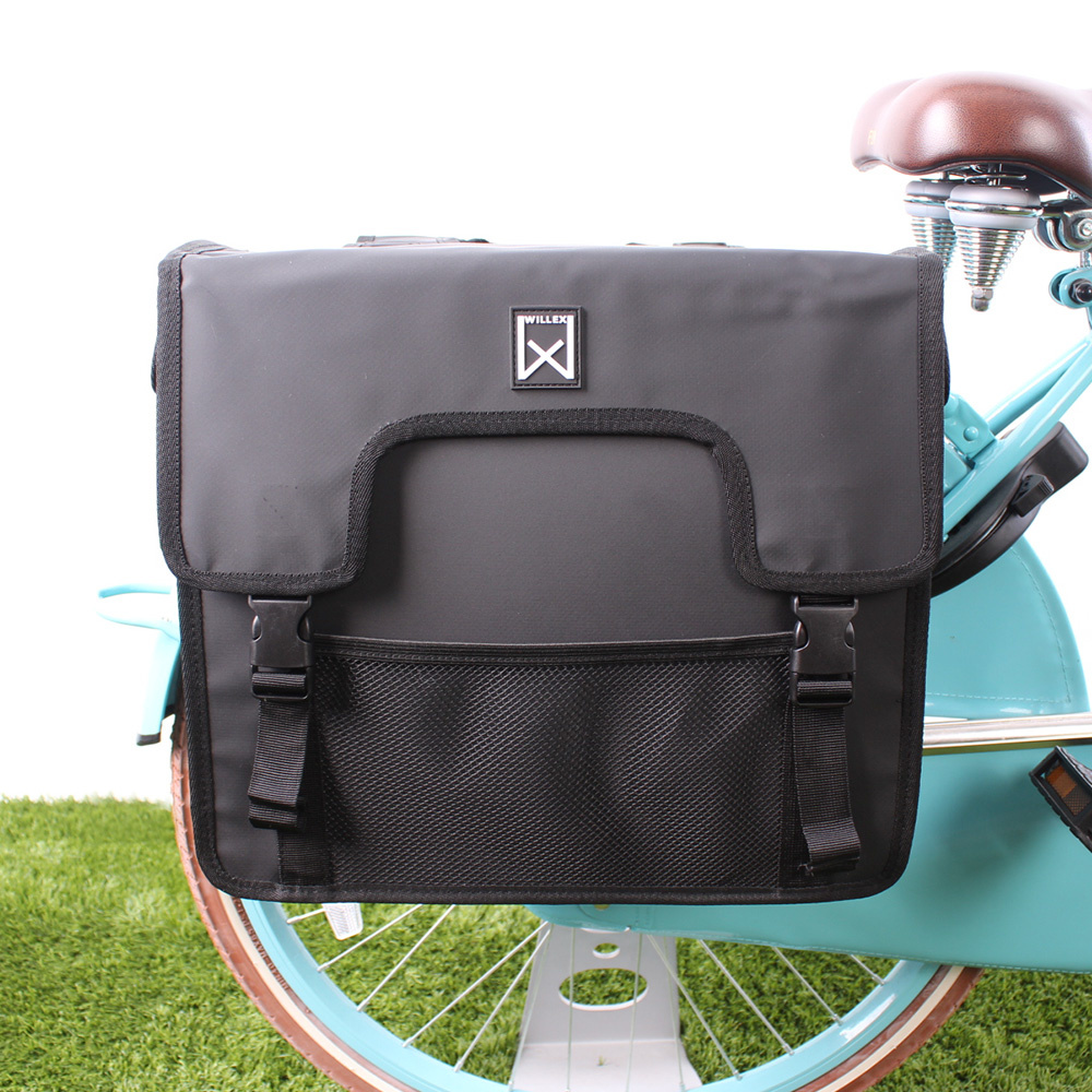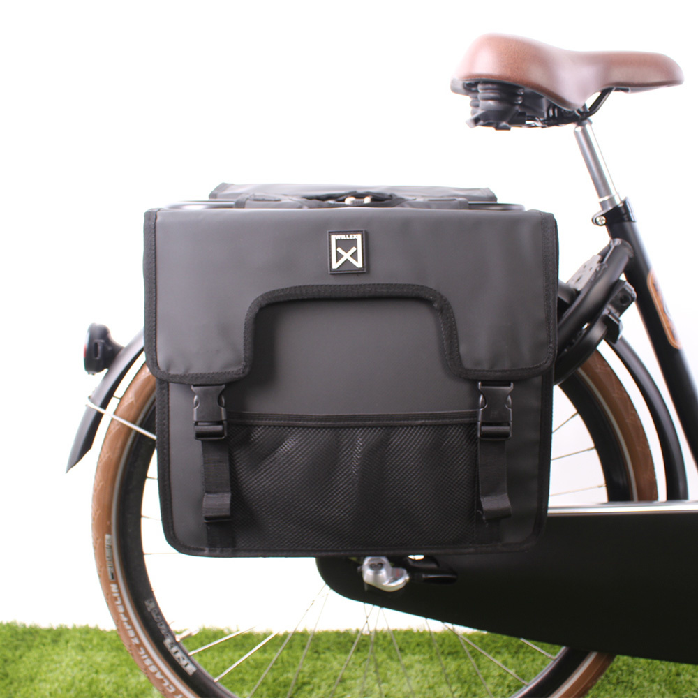 Deze supersterke en duurzame tas voor alle boodschappen is van het Belgische merk Willex. De tas is e-bike ready en mooi afgewerkt. De dubbele Shopper van Willex is gemaakt van waterdicht, tweezijdig gecoat bisonyl. De tas is uitgevoerd in het matzwart en biedt 38 liter aan inhoud, zodat er aardig wat boodschappen en andere spullen in meegaan.