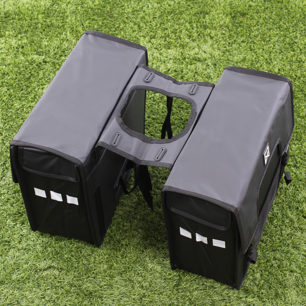 Naast de waterdichte eigenschappen van het gebruikte materiaal, zorgen de regenflappen aan de kleppen van de tas ervoor dat het bij nat weer niet kan inregenen. De extra grote reflectieblokken aan de zijkanten maken de tas goed zichtbaar in het verkeer. U bevestigt de tas eenvoudig op uw fiets met riempjes en haken. De fietstas is ook geschikt voor bevestiging met een MIK- of Racktime-bagagedragersysteem (niet inbegrepen).