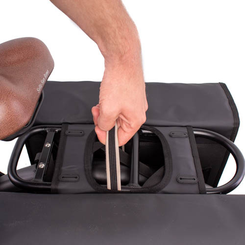 Deze dubbele fietstas bevestigt u eenvoudig aan uw bagagedrager met de twee bevestigingsriempjes. Gereedschap is dus niet nodig! Voor extra stabiliteit kunt u de tas nog verder vastmaken met het klittenband onderaan de achterplaat van de tas. De dubbele tas is bovendien ook geschikt voor bevestiging met MIK® en Racktime® bagagedragersystemen. Adapters voor deze systemen zijn niet inbegrepen, maar los bij te bestellen.