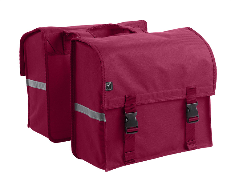 Een paarsrode dubbele fietstas uit de 7-serie van Willex, gemaakt van sterk polyester. Deze praktische Willex is mooi in zijn eenvoud. De twee ruime compartimenten van de tas hebben samen een inhoud van 34 liter. De tas is voorzien van opvallende reflecterende strepen op de zijkant.