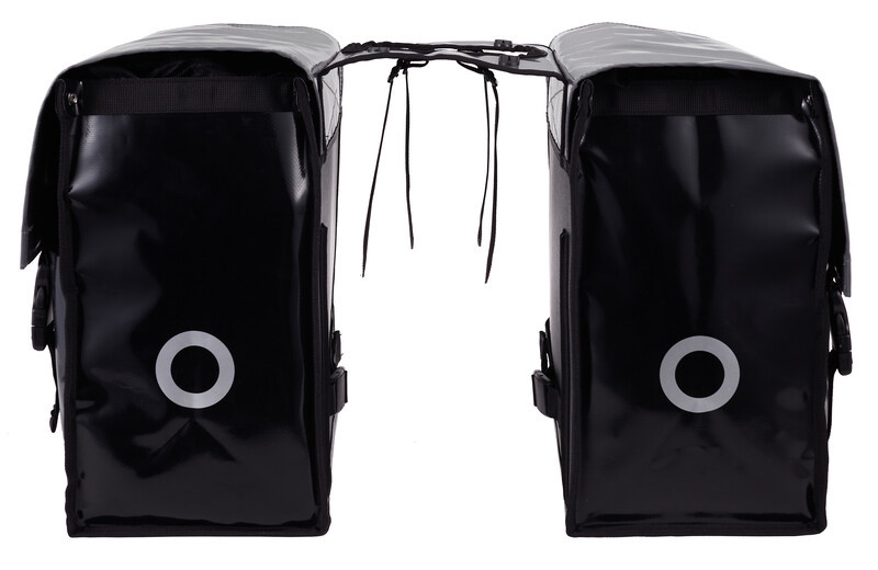 Het waterbestendige bisonyl maakt deze ruime, dubbele fietstas stoer en sterk tegelijk. De tas heeft een regengootje in de bodem en harde bodem- en achterplaten. Met een aansnoerband met een klemgesp voorkomt u dat de tas openvalt. Grote, stevige klikgespen en reflectievlakken aan de zijkanten maken de tas helemaal af.