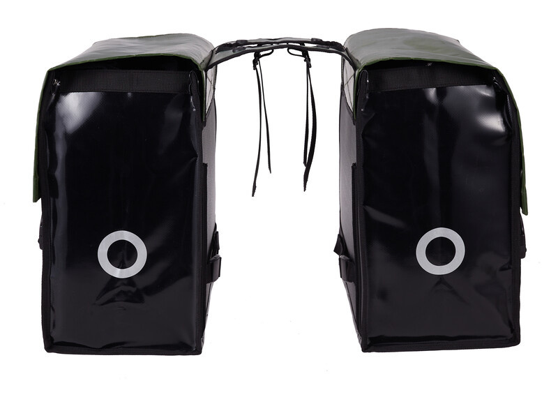 Het waterbestendige bisonyl maakt deze ruime, dubbele fietstas stoer en sterk tegelijk. De tas heeft een regengootje in de bodem en harde bodem- en achterplaten. Met een aansnoerband met een klemgesp voorkomt u dat de tas openvalt. Grote, stevige klikgespen en reflectievlakken aan de zijkanten maken de tas helemaal af.