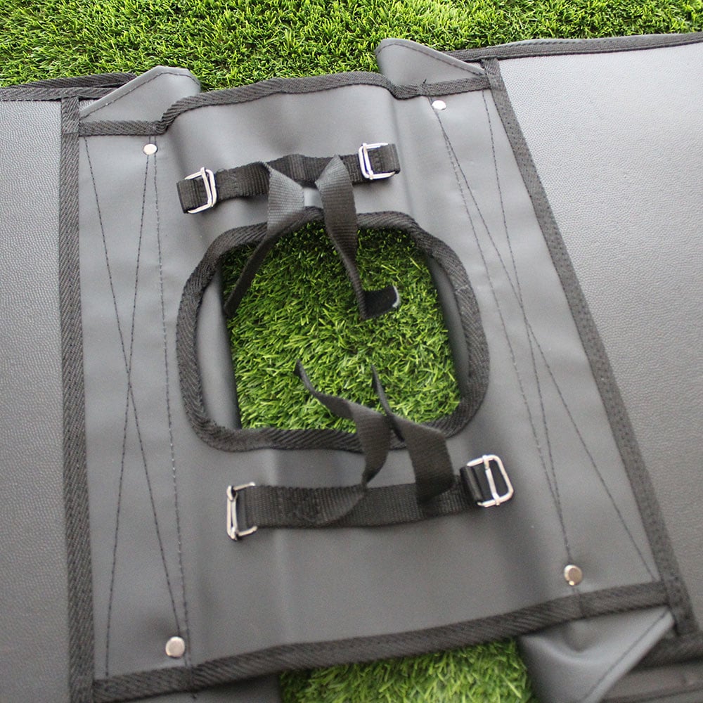 Extra grote gespen en dito reflectievlakken aan de achterzijde maken deze tas helemaal af. Bijna, want optioneel kunt u er nog de los verkrijgbare extra wielbeschermers aan toevoegen, naast de buitengewoon handige afneembare tassendrager.