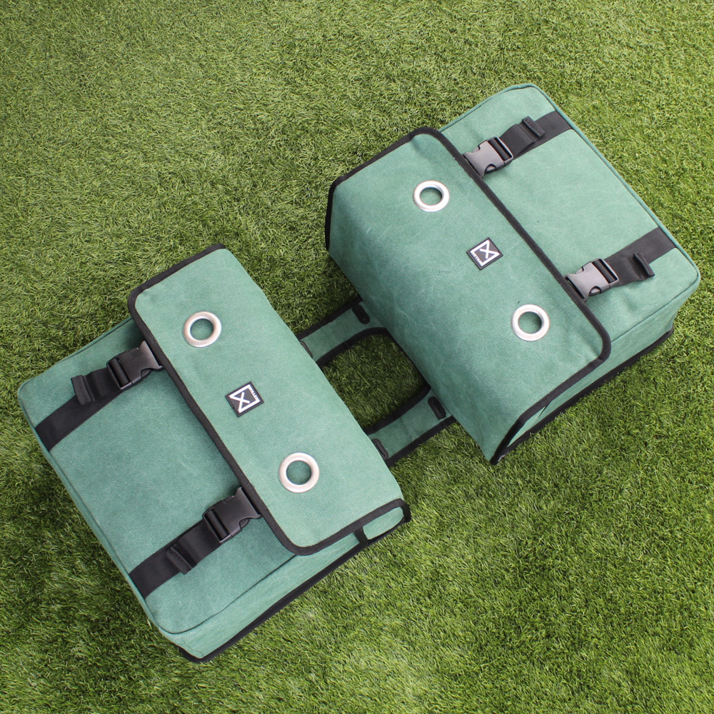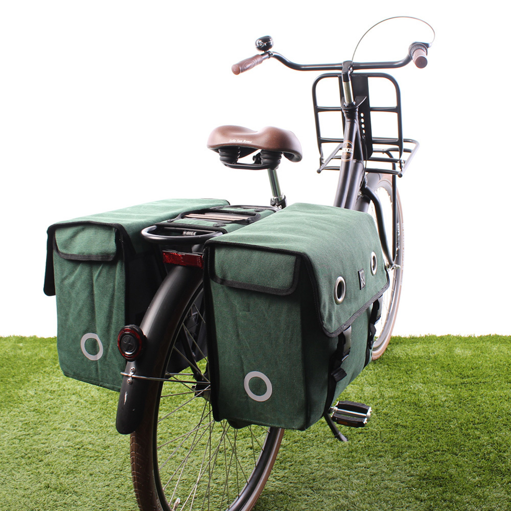 Deze groene dubbele canvas fietstas heeft alles wat u wenst. De tas is supersterk, van hoge kwaliteit en strak vormgegeven. Daarnaast heeft de fietstas een ruime inhoud van 52 liter voor uw spullen.