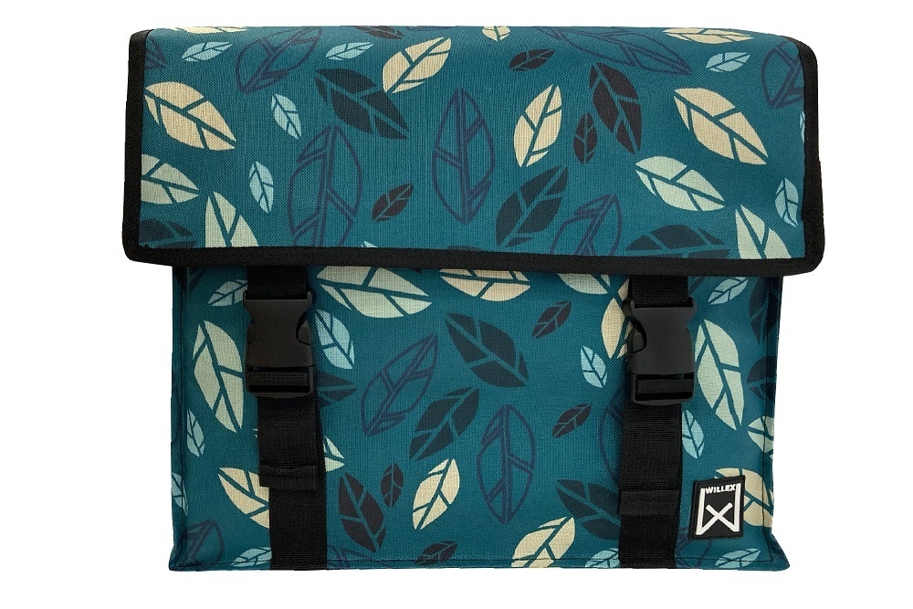 Deze fraaie dubbele fietstas met een trendy print van bladeren op een blauw-groene achtergrond is gemaakt van waterdicht en waterafstotend polyester. De tas is voorzien van een groot reflectievak, zodat u goed zichtbaar bent in het donker. Deze fietstas van kwaliteitsmerk Willex is uitermate geschikt voor dagelijks gebruik en past ook op e-bikes.