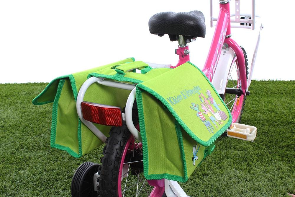 Deze kleine vrolijke fietstas van Kikker en zijn vriendjes heeft een inhoud van 7 liter en is bedoeld voor de allerkleinste tweewielers onder ons. De dubbele fietstas sluit aan beide kanten met een gespsluiting en past uitstekend op bijvoorbeeld een peuterfiets. Ziet u de kleine al gaan met zijn eigen spulletjes in zijn eigen fietstas?