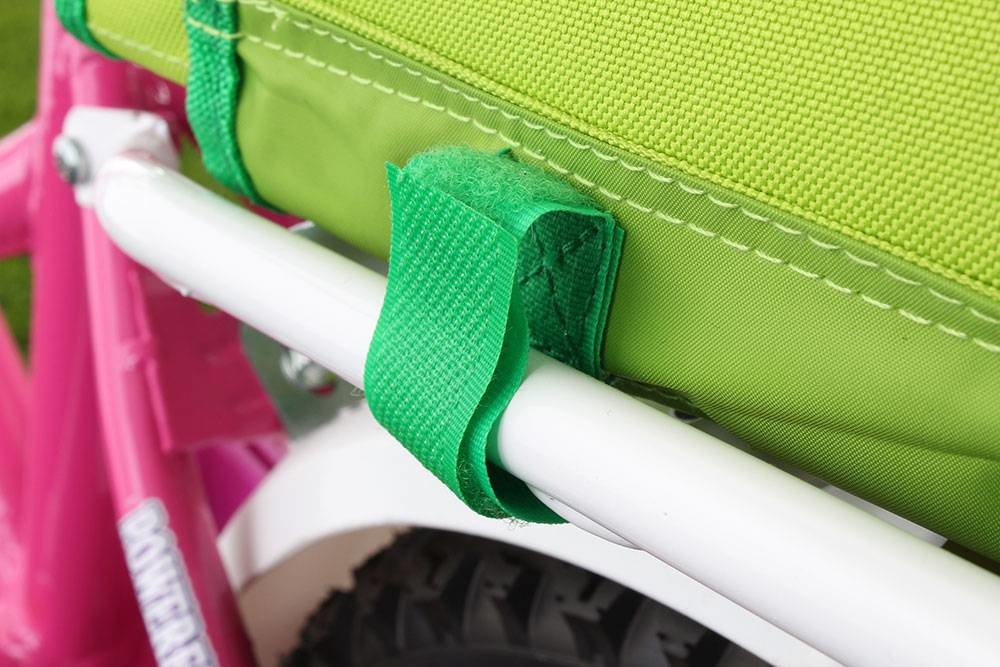 Deze kinderfietstas heeft aan beide kanten een opdruk van Kikker en zijn vriendjes waar elk kind blij van wordt. De tas bevestigt u aan de bagagedrager met twee klittenbandjes en aan de bovenkant van de tas zit een handvat. De tas kan dan ook weer makkelijk van de fiets worden afgehaald. Uw kind neemt vanaf nu zijn eigen spulletjes mee naar het park of picknick en ook favoriet speelgoed gaat zo moeiteloos overal mee naartoe.