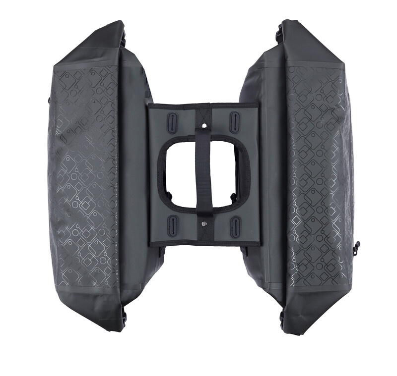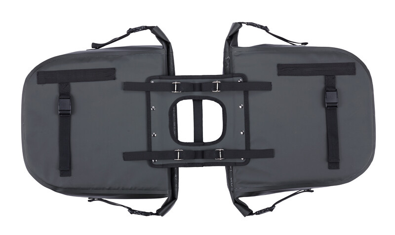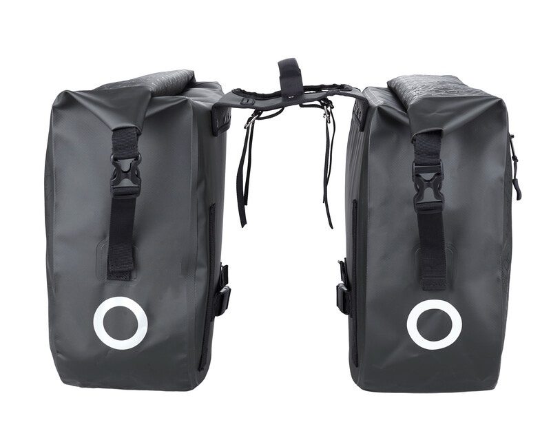 De sterke dubbele fietstas heeft aan beide zijden een ruim hoofdvak dat waterproof wordt afgesloten met klittenband en een rolsluiting, die u vastzet met twee klikgespen. Op de voorkant van de tas zit een extra opbergvak met een waterproof ritssluiting. De tas is voorzien van een verstevigde achterplaat en bodemplaat.