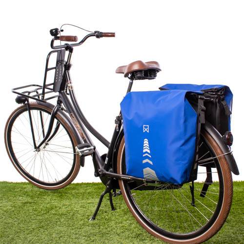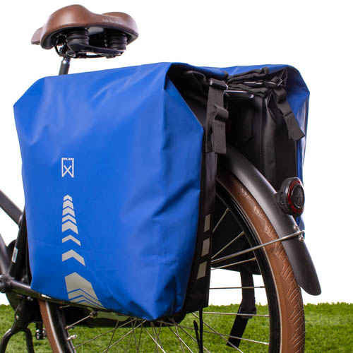 Deze blauwe dubbele fietstas van Willex is gemaakt van sterk, waterdicht bisonyl en heeft een inhoud van 34 liter. De tas is voorzien van een waterproof vouwsluiting, reflectie en eenvoudige bevestiging met riempjes. Een praktische en sportieve dubbele fietstas!