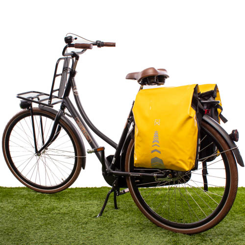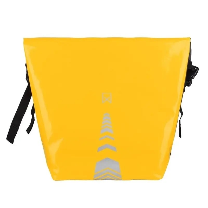 Deze opvallende gele dubbele fietstas van Willex is gemaakt van sterk, waterdicht bisonyl en heeft een inhoud van 34 liter. De tas is voorzien van een waterproof vouwsluiting, reflectie en eenvoudige bevestiging met riempjes. Een praktische en sportieve dubbele fietstas!
