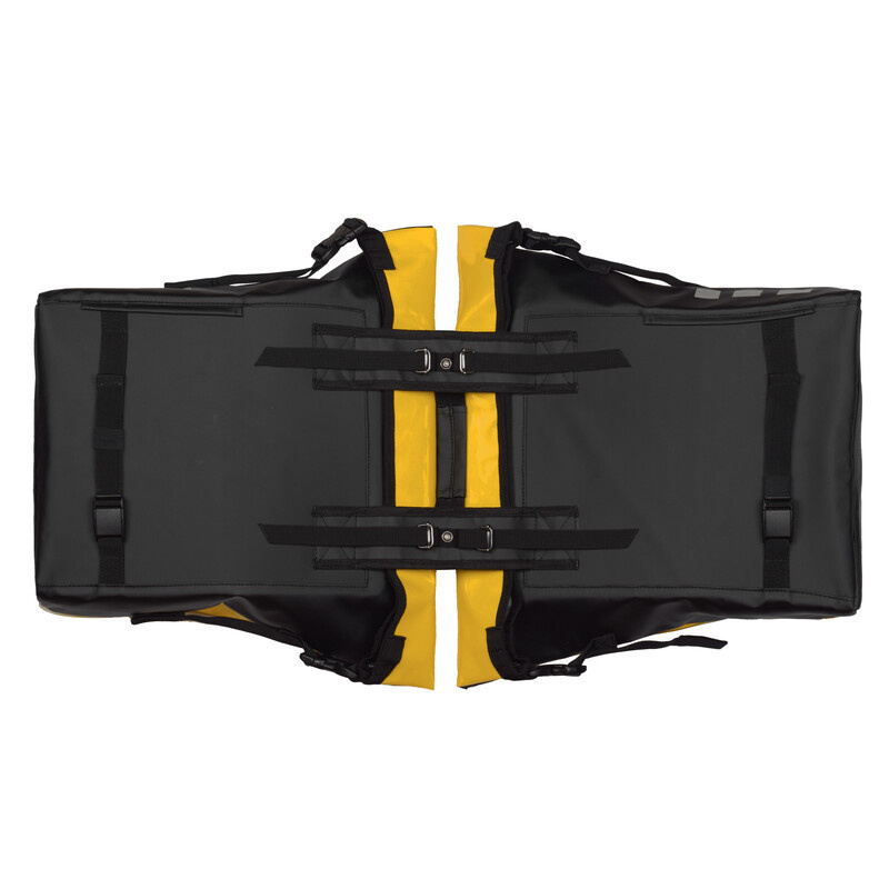 De twee ruime hoofdvakken van de tas hebben een verstevigde achterplaat en bodemplaat en bieden samen ruimte voor 34 liter aan spullen. U sluit het hoofdvak met klittenband en een waterproof vouwsluiting, die u aan de zijkanten vastzet met een verstelbare klikgesp. De tas is voorzien van opvallende reflecterende bedrukking.
