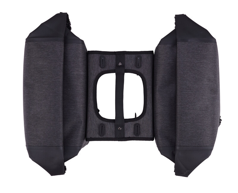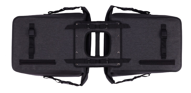 De tas sluit met een waterbestendige rolsluiting die wordt vastgezet met twee klikgespen. In een van de hoofdvakken van de dubbele tas bevindt zich een gevoerd laptopvak, met aan de voorzijde penhouders en een vakje voor een smartphone. Op de voorkant van de tas zit een waterdicht ritsvak. De losse bodemplaat zorgt voor extra stevigheid. Deze is met klittenband in de tas te bevestigen. De zijkanten zijn voorzien van opvallende reflectie.