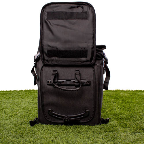 In het hoofdvak van de tas vindt u een steekvak en een gevoerd laptopvak. Het hoofdvak van de tas verstevigt u met de losse meegeleverde bodemplaat, die u vastzet met klittenband. U sluit de tas met klittenband en een waterbestendige rolsluiting, die wordt vastgezet met klikgespen. Op de voorkant van de tas zit een extra ritsvak met een waterproof ritssluiting.