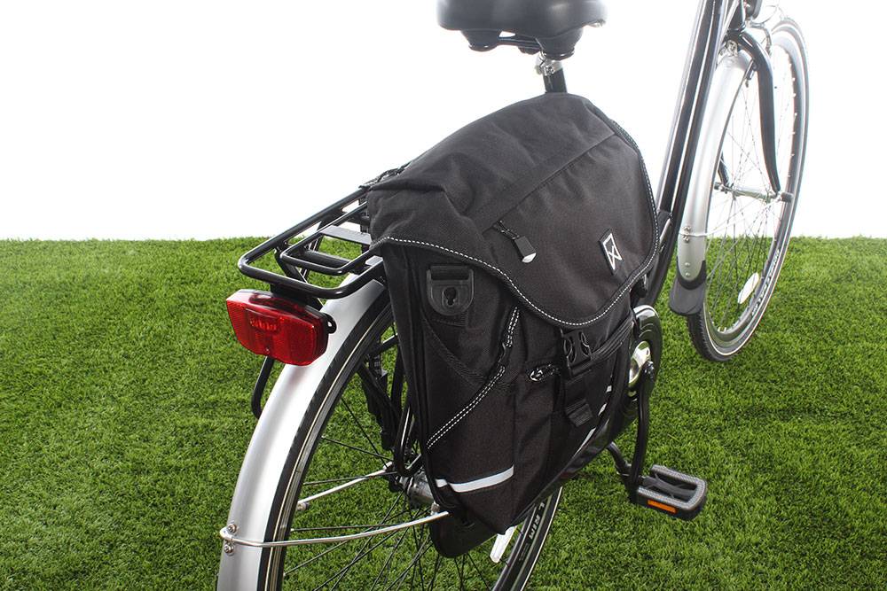 Deze enkele fietstas heeft bovendien een binnenhoes die met een koord strak is dicht te trekken, (smalle) open zijvakken, goede, stevige klikgespen, een praktische handgreep en ritslussen die makkelijk beet te pakken zijn. Ook heeft de tas brede voetsteuntjes voor het stabiel kunnen neerzetten op de grond.