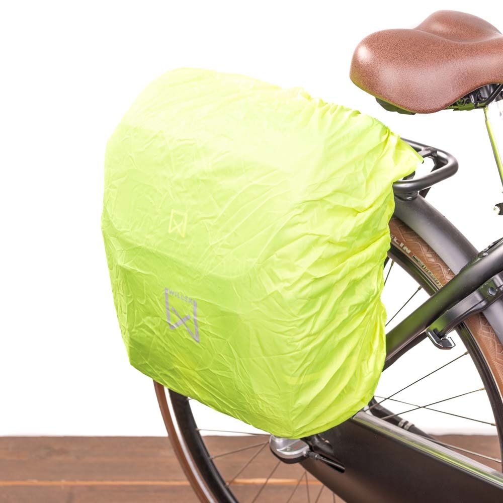 De tas zorgt voor voldoende zichtbaarheid in het verkeer in de vorm van een reflecterende bies, opvallend reflecterende bedrukking én gepatenteerde Willex® reflectie op de regenhoes.