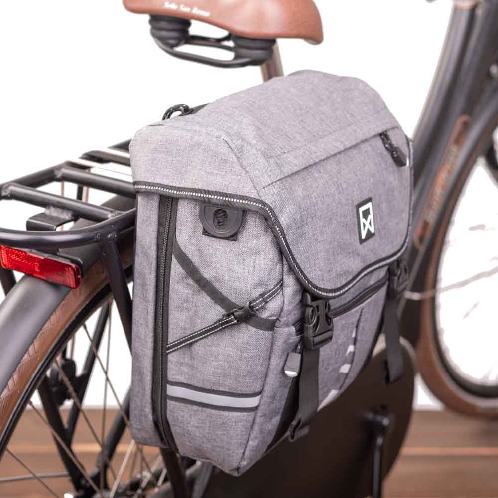 Eén van de fietstassen uit de uitgebreide, kenmerkende Willex-serie '1200' die misschien wel het best past bij uw eigen fietstas-behoefte, is deze kleinere, met rits vergrootbare, grijze pakaftas S 1200 van (nog altijd) 10 liter.