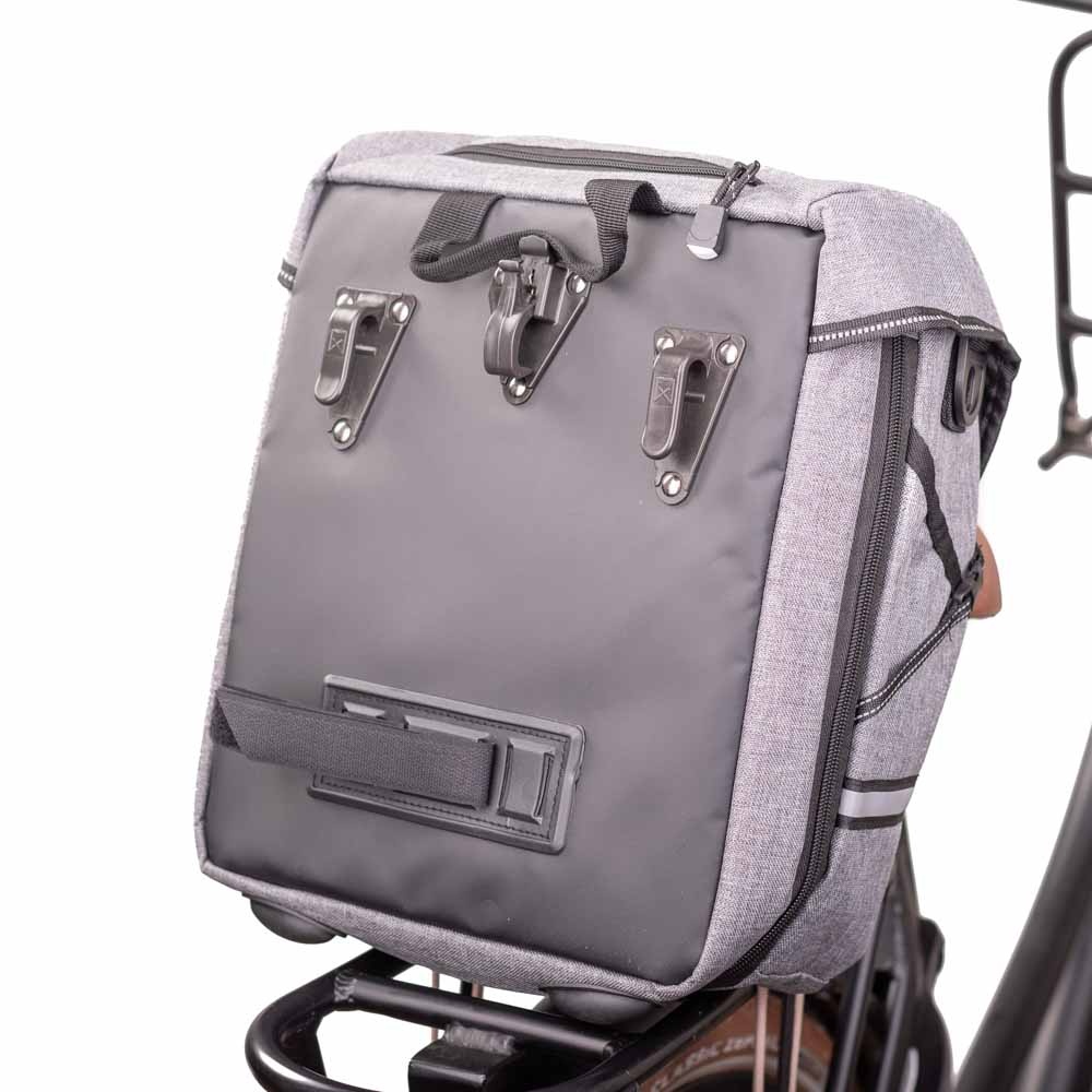 Deze enkele fietstas is dankzij de afneembare (en verstelbare) schouderband tevens te gebruiken als schoudertas. Naast dit meeneemgemak zijn er nog veel andere details die deze veelzijdige tas voor velen de moeite waard maken.